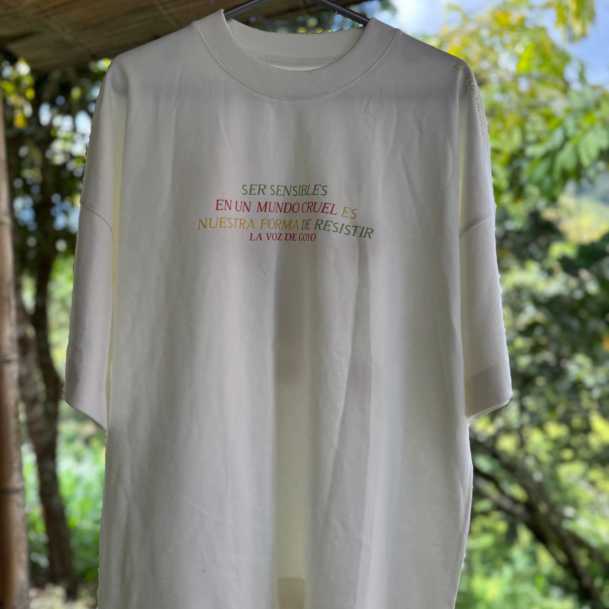 Nuestras camisetas son elaboradas en algodón peruano Pima Frío 100%. Cuentan con un corte Oversized (tallaje grande) y son Unisex (con una horma ideal tanto para mujer como para hombre).